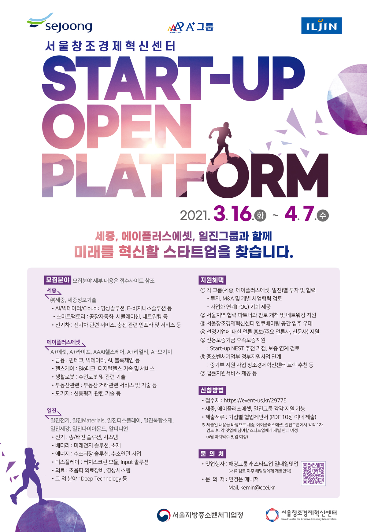 공모 방법, 일정, 접수는 서울창조경제혁신센터 홈페이지 (http://event-us.kr/29775)에서 확인할 수 있다.